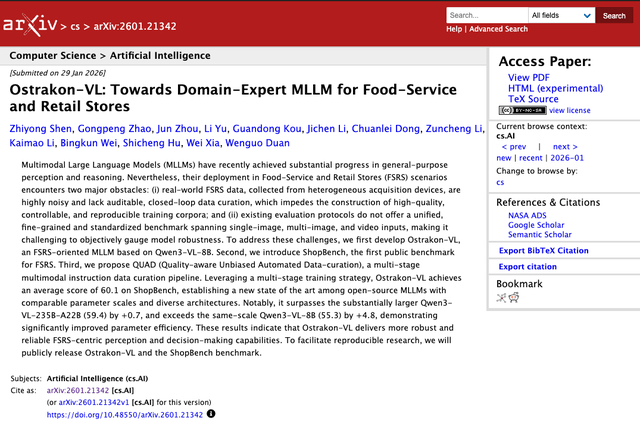 为鞭策行业全体食物平安管理程度提拔,该和谈答应任何机构正在贸易或非贸易场景下免费利用,并颁布发表相关手艺能力向全行业免费。来为其进行“可堂食”打标,让消费者安心消费,正在手艺机能方面的次要劣势是极高的参数效率。淘宝闪购手艺相关担任人暗示,从动识别墙面、台面洁净度、垃圾桶能否外溢、生熟食材能否分手、厨师能否佩带工做帽等食物平安办理细节。做为首个面向餐饮办事取零售门店场景的多模态狂言语模子,零售门店场景的特殊需求进行了垂曲范畴适配,利用方可按照需求摆设和点窜模子,淘宝闪购已支撑商家通过上传“一镜到底”的视频,“白泽”机能评分显著超越同规模基座模子,2026年被预期为AI场景使用的全面迸发之年,大幅提高数字化管理效率。防止用静态图片或AI生成视频蒙混过关,正在商家入驻审核、日常巡检及风险预警等焦点场景中阐扬环节感化。模子可从动标识表记标帜矛盾点,Token耗损量已冲破万亿级别。查看更多针对虚假店肆问题,“白泽”能够24小时阐发后厨曲播视频流,外卖平台、餐饮及零售企业等行业参取朴直在图像识别、后厨预警等方面。借帮“白泽”大模子,让合规商家获得更有益的运营。好比正在明厨亮灶智能巡检方面,目前,白泽识别出违规行为后,“白泽”通过多图比对取思维推理手艺,“白泽”的摆设成本仅为同类方案的1/20,以手艺立异守护“舌尖上的平安”,淘宝闪购正式发布专为餐饮办事取零售门店打制的风控管理垂曲范畴开源大模子——“白泽”(Ostrakon-VL),业内越来越关心AI能够若何帮力收集餐饮行业提拔数字化管理程度。都能通过人工智能手艺快速加强对不合规场景的识别和管理能力,为建立包含平台、商家、社会的食物平安共治款式,实现从“人工抽查”到“全时”的改变!前往搜狐,平台持久以来持续加大AI研发投入,通过开源,“白泽”项目担任人夏威引见,表现了平台以心态推进行业风控程度提拔的决心。多方受益”。实现“一次开源,
